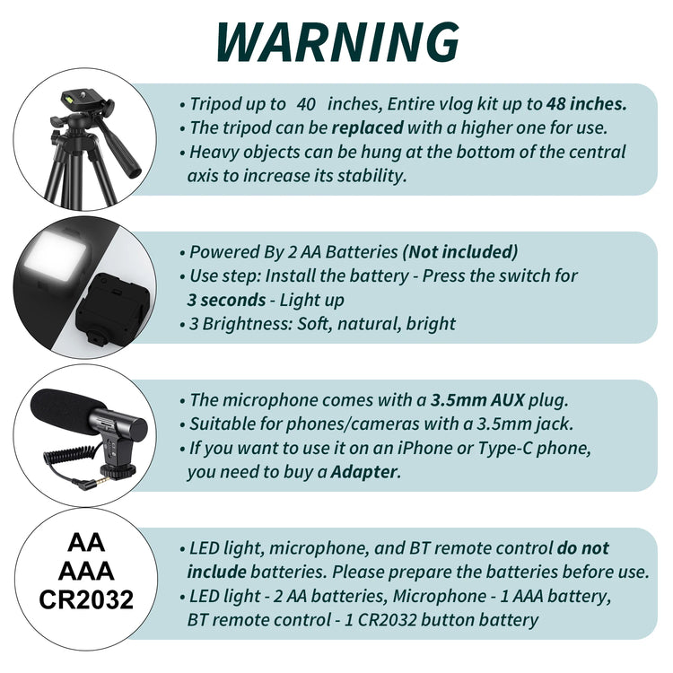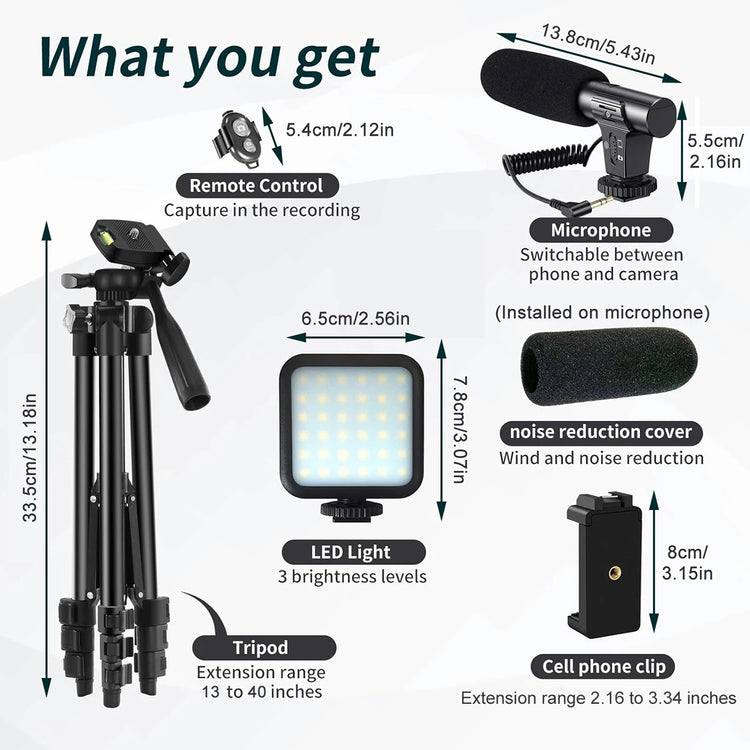 MAMEN Portable Vlogging Kit 48IN Phone Camera Tripod with Microphone LED Light for Photo Vlog Selfie Interview Live Streaming