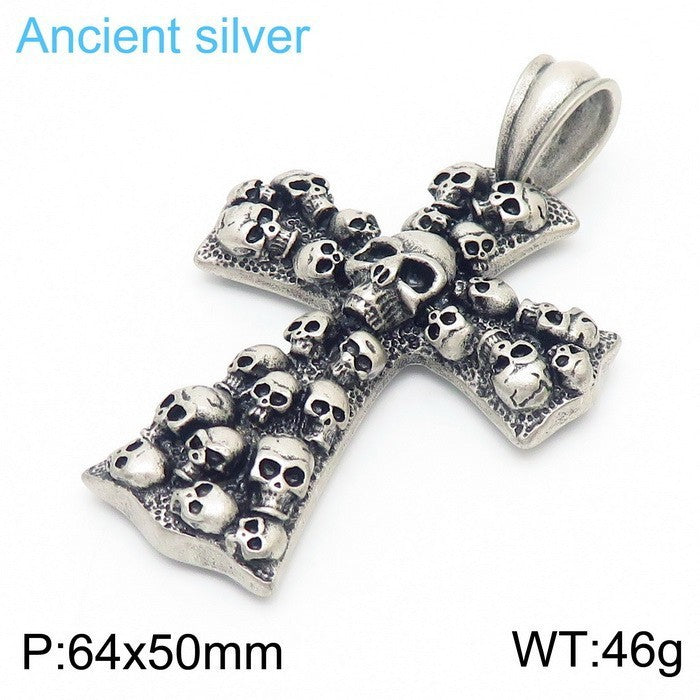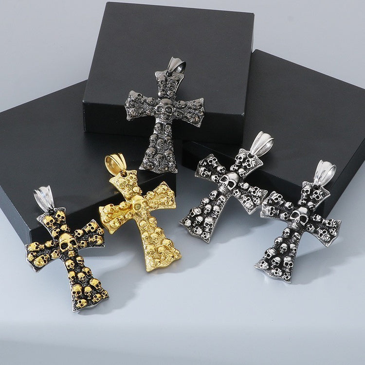 Stainless Steel Cross Shelf Skull Pendant Necklace