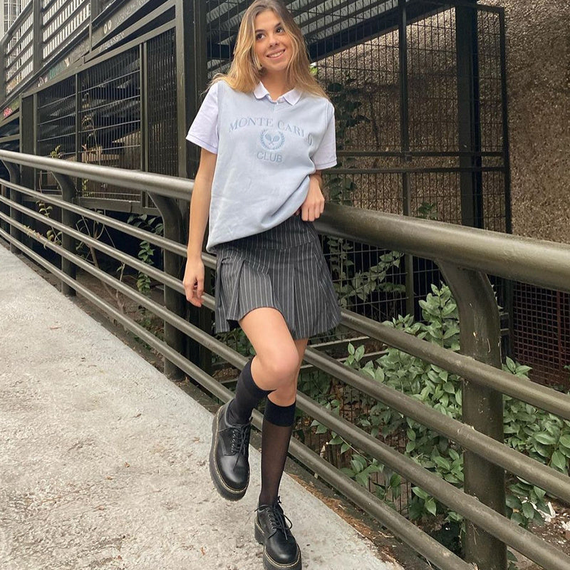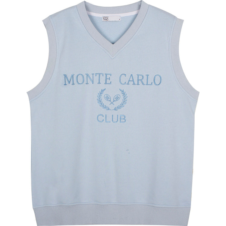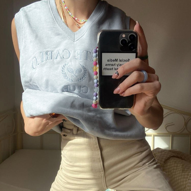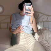 Vintage Tang American Retro Cream Blue White Sleeveless Vest Women''s Trendy Summer Loose T-shirt